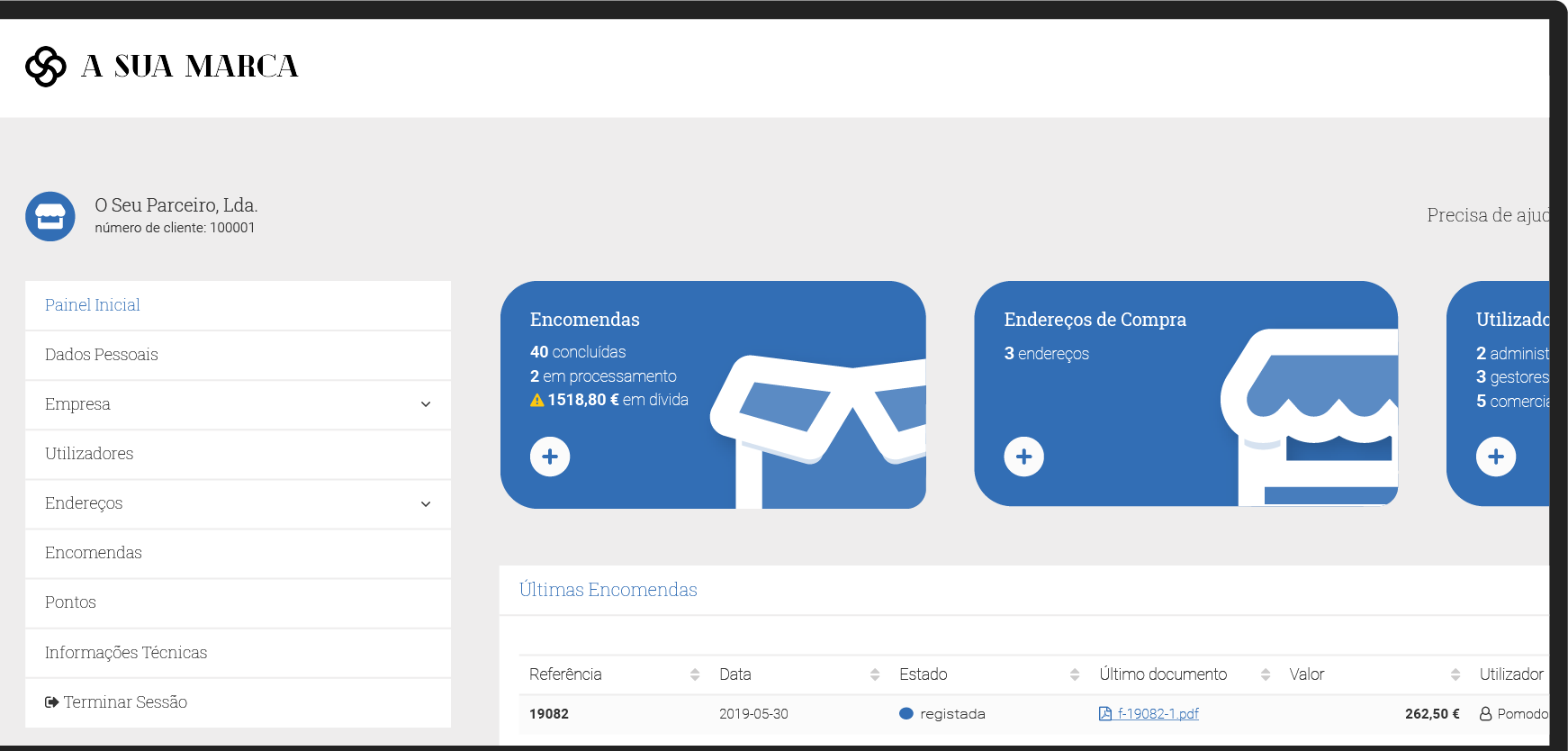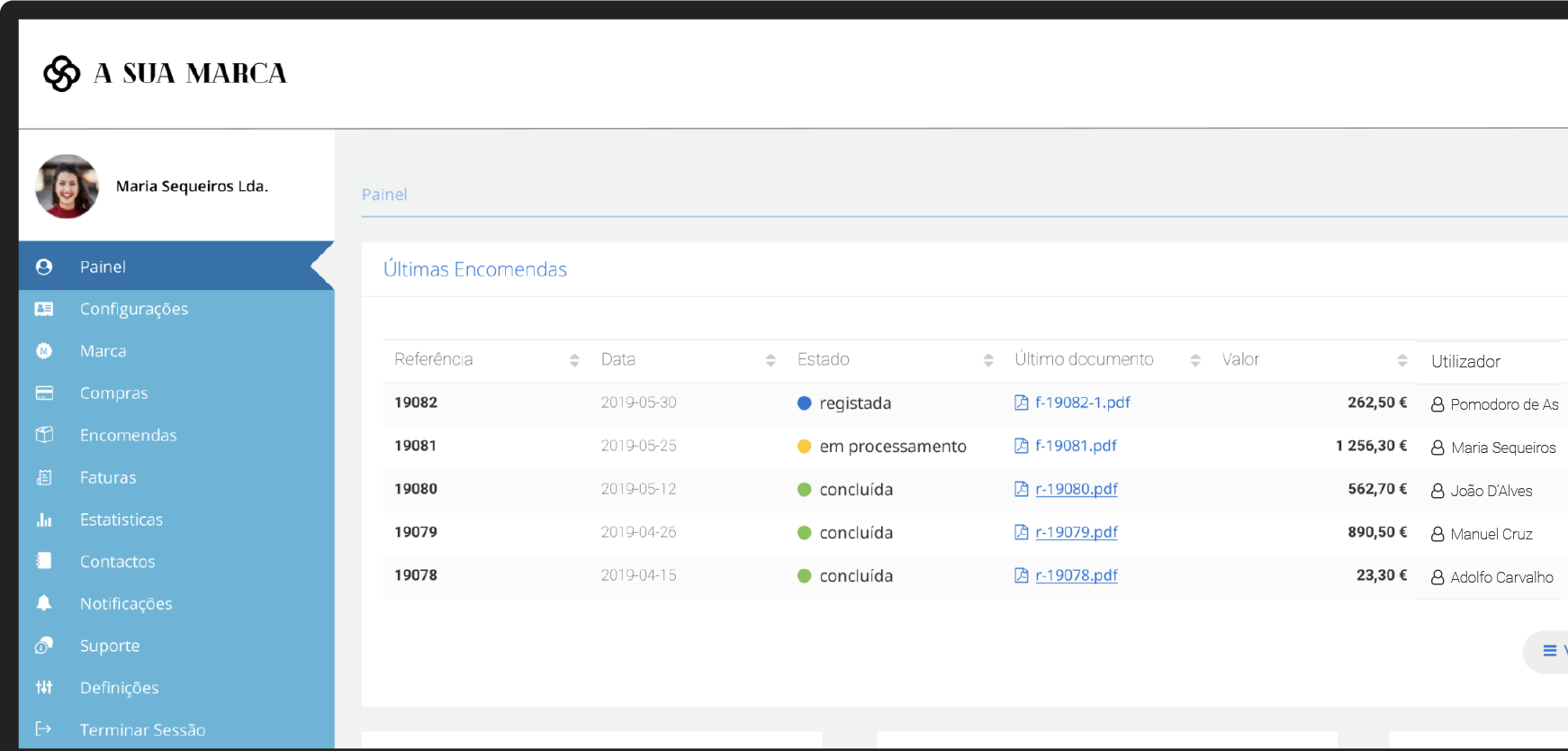 Disponível 24h por dia de forma a otimizar os processos de compra. Os revendedores da sua marca podem de forma fácil e intuitiva fazer encomendas, inserir informações da empresa ou gerir os acessos dos seus comerciais.